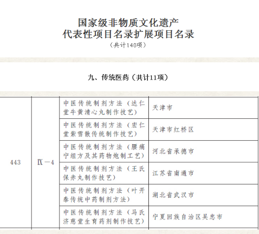 《達(dá)仁堂牛黃清心丸制作技藝》成功入選國家級非物質(zhì)文化遺產(chǎn)代表性項(xiàng)目名錄擴(kuò)展項(xiàng)目名錄第九項(xiàng)傳統(tǒng)醫(yī)藥類。