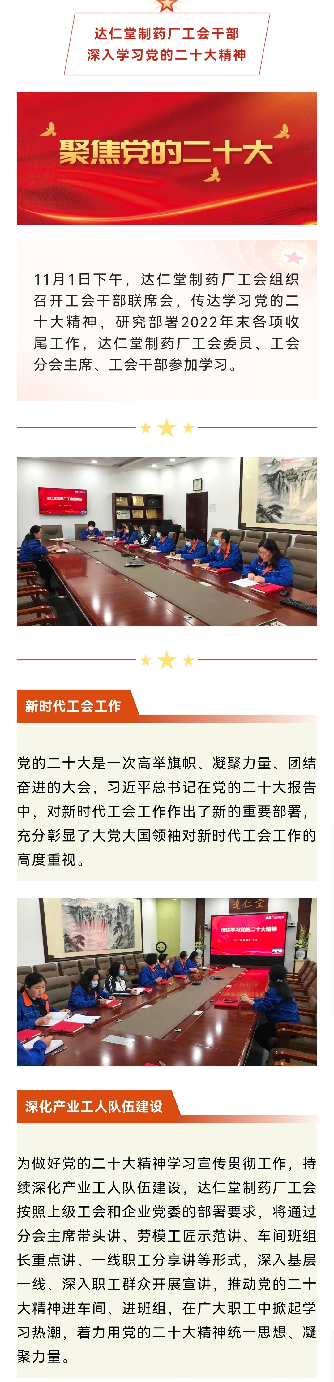 達(dá)仁堂制藥廠工會(huì)干部深入學(xué)習(xí)黨的二十大精神
